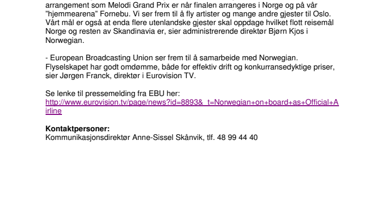 • Melodi Grand Prix deltakere vil fly Norwegian