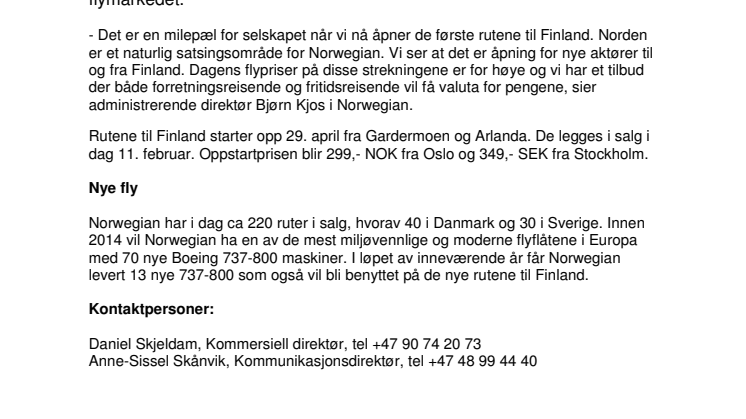 • Norwegian satser i Norden og åpner nye ruter til Helsinki