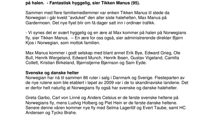 • Nye norske, svenske og danske halehelter: Max Manus halehelt på Norwegians nyeste fly