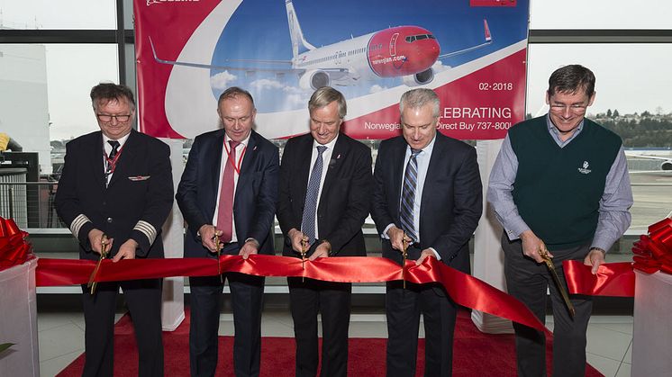 - Denne flyleveransen markerer slutten på en æra for Norwegian. Da vi introduserte Boeing 737-800 i flåten for 10 år siden, gjorde vi det for det var et moderne og drivstoffeffektivt fly med lave driftskostnader. Nå starter vi et nytt kapittel i Norwegians historie med leveranse av over 100 Boeing 737 MAX-fly som er enda mer drivstoffeffektive, sier Norwegians konsernsjef Bjørn Kjos